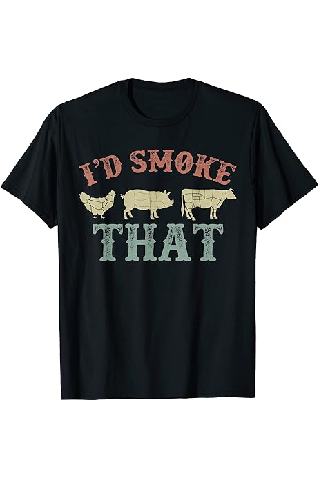 Amazon Com Funny Bbq Grilling T Shirt For Men Meat Smoker Lover Foodies Smoke Em If You Got Em Cow Pig Chicken Stack Black Large Everything Else